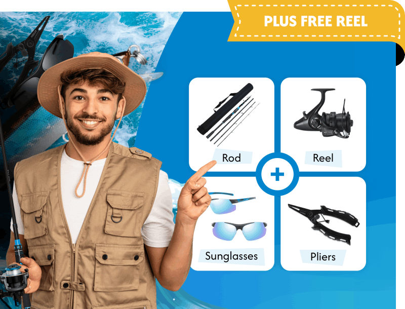 Rod + Reel + Pliers + Sunglasses. All the essentials, no filler. Bundle up and save compared to buying separately.